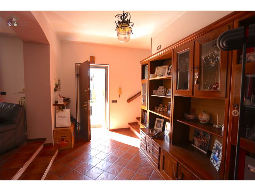Primo Piano ampio , ingresso, soggiorno con camino, cucina abitabile, bagno, balcone, scala interna di collegamento sia alla cantina e all'autorimessa.