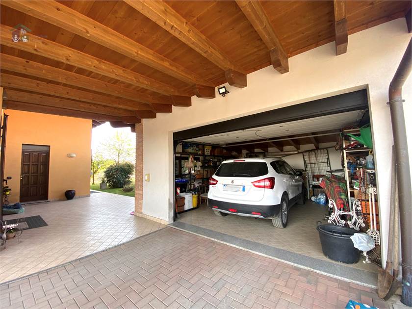 Un'autorimessa di dimensioni generose con basculante automatizzata completa l'immobile.