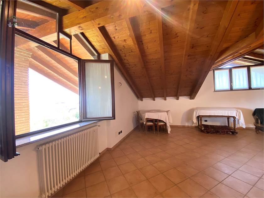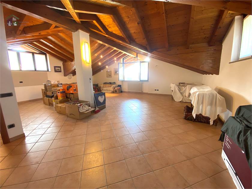 Una scala interna conduce ad una mansarda della stessa superficie del piano terreno, raggiungibile anche da un ingresso indipendente, composta da grande soggiorno con cucina a vista, ampio bagno, camera da letto matrimoniale e cabina armadi.
