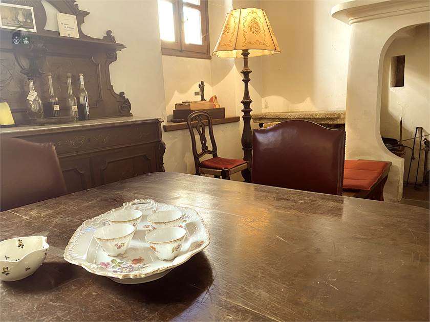 Già all’ingresso si respira un’aria d’altri tempi, caratterizzata da soffitti alti, dall'ampiezza dei locali sottolineati dai pavimenti originali in legno o decorati con cementine dai colori discreti che creano una sorta di "tappeto" naturale e dai camini onnipresenti all'interno dei locali.